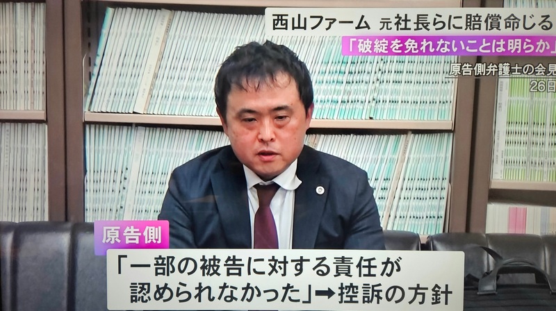 | NHKテレビ「ニュース845」で、西山ファーム集団訴訟の第1次判決についてコメント(令和4年2月24日) | ![]() |